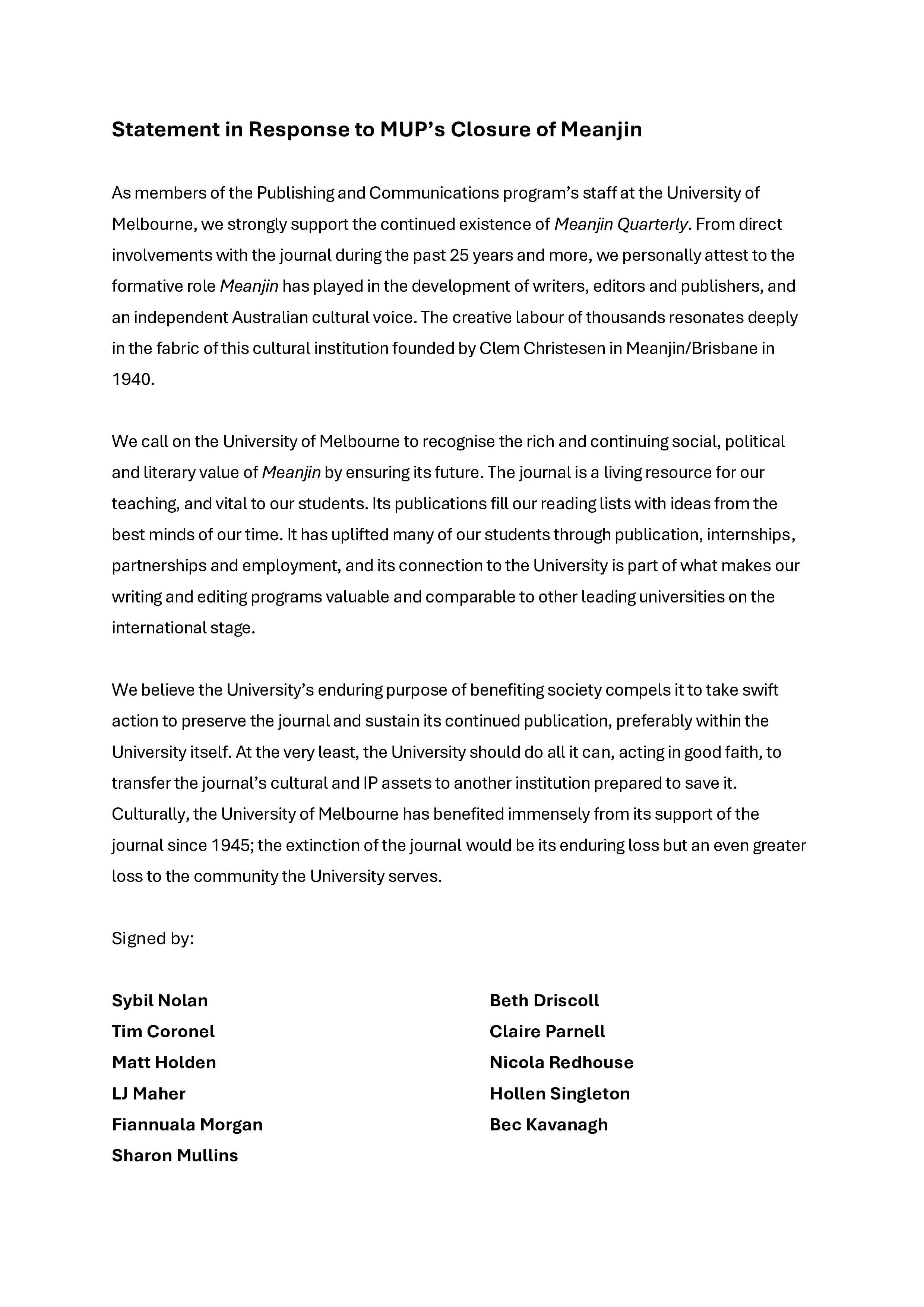 On the closure of Meanjin